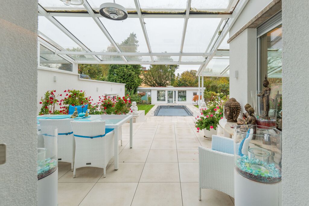 Die Sicherheit ist durch eine Alarmanlage gewährleistet. Ein Wintergarten lädt auch in den kälteren Monaten zum Verweilen ein. Eine Klimaanlage sowie eine Fußbodenheizung sorgen für angenehme Temperaturen zu jeder Jahreszeit.