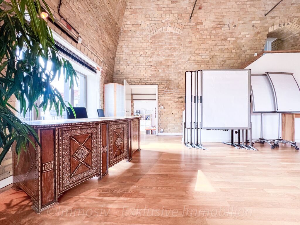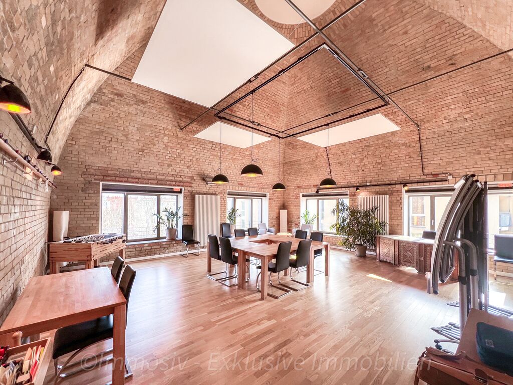 Ein eindrucksvolles Tonnengewölbe aus Sichtmauerwerk, ergänzt durch Akustikelemente unter der Gewölbedecke, verleiht dem Raum beeindruckende Tiefe und Offenheit. Die außergewöhnliche Deckenhöhe und das einfallende Licht erzeugen eine fast sakrale Wirkung – ideal für stilvolle Abende, kreative Projekte oder entspannte Rückzugsorte mitten in der Stadt.