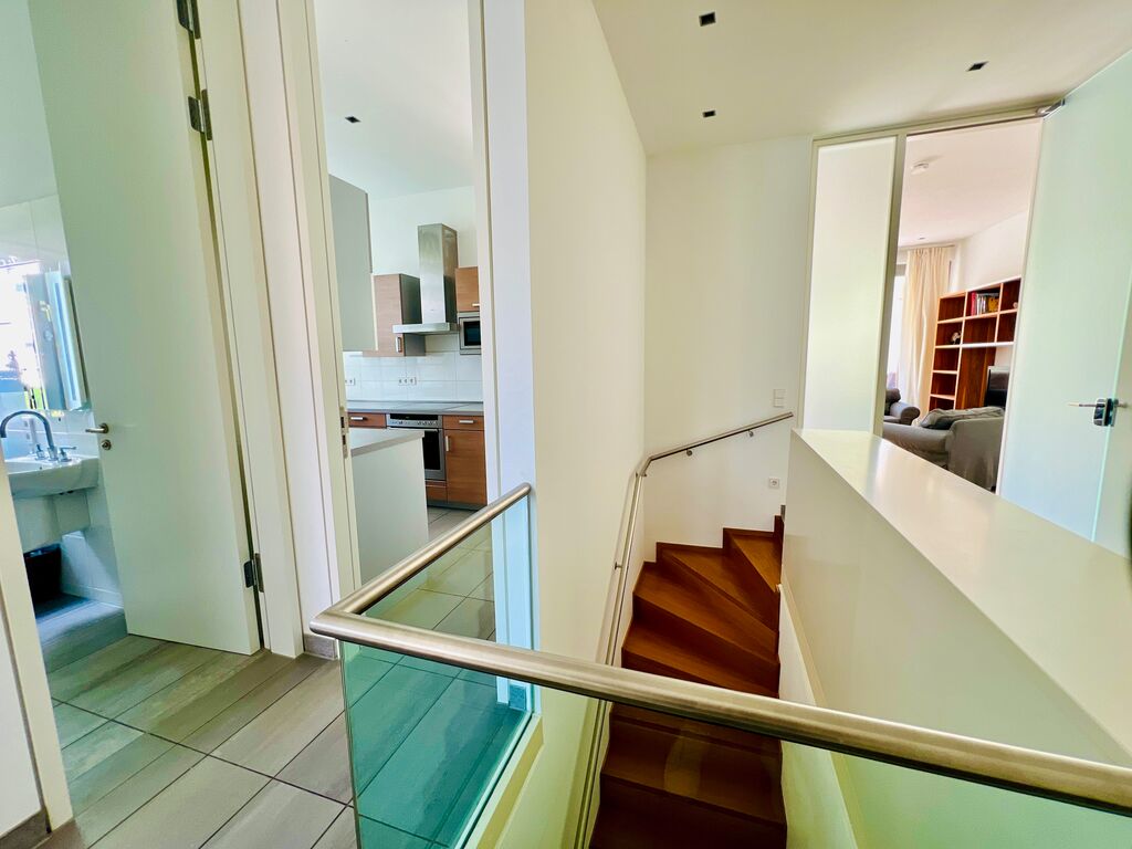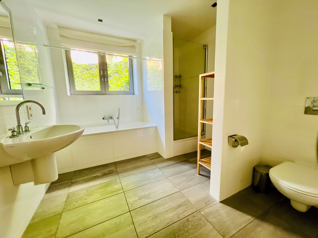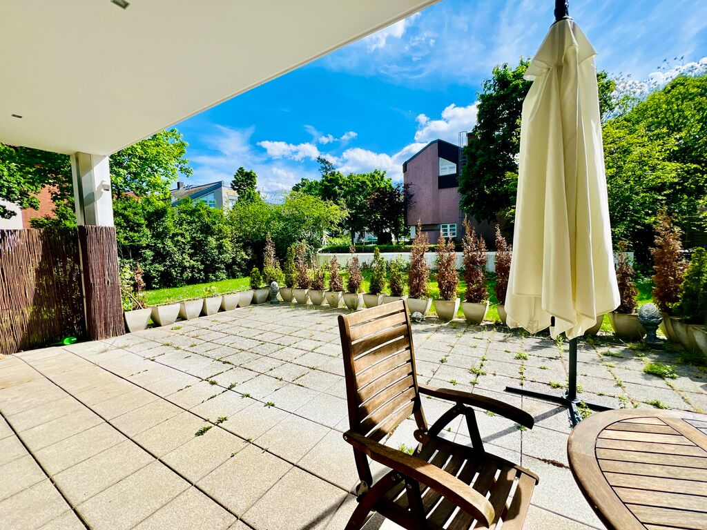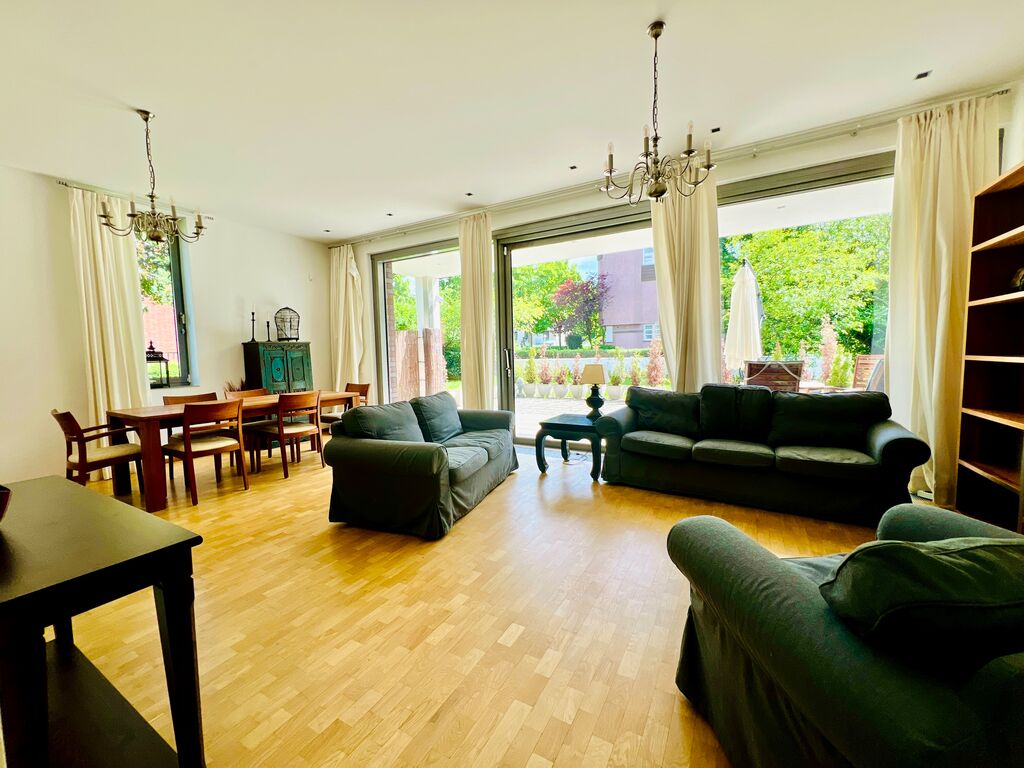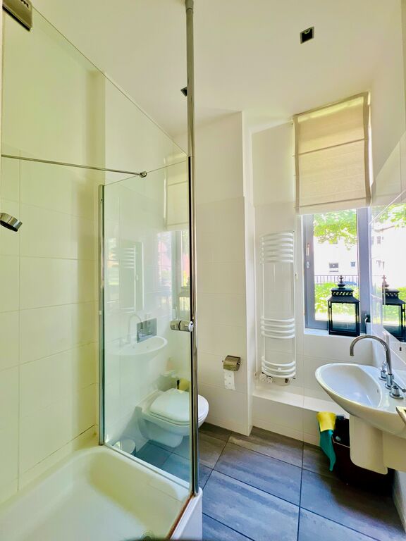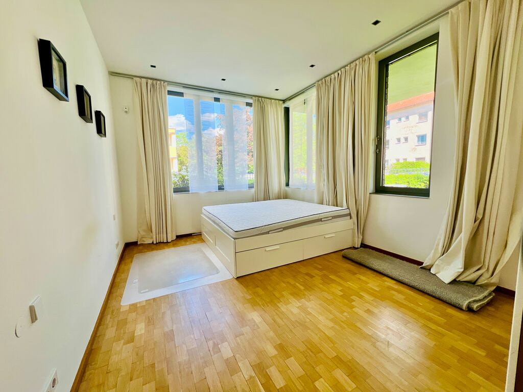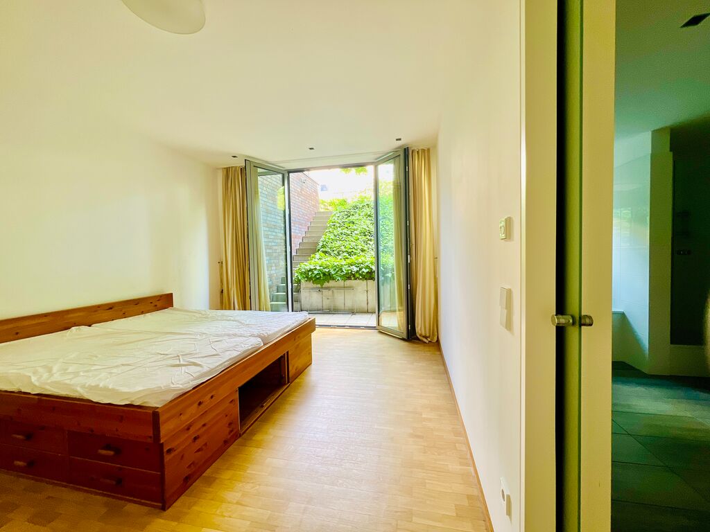 Vermietung für 12 Monate maximal. Eichenparkett mit FBH Zwei vollwertige Bäder Raumhöhe Türen Deckenhöhe 3.20 Meter EBK im abgetrennten Raum Stufenlose Terrassenausgang Komplett möbliert