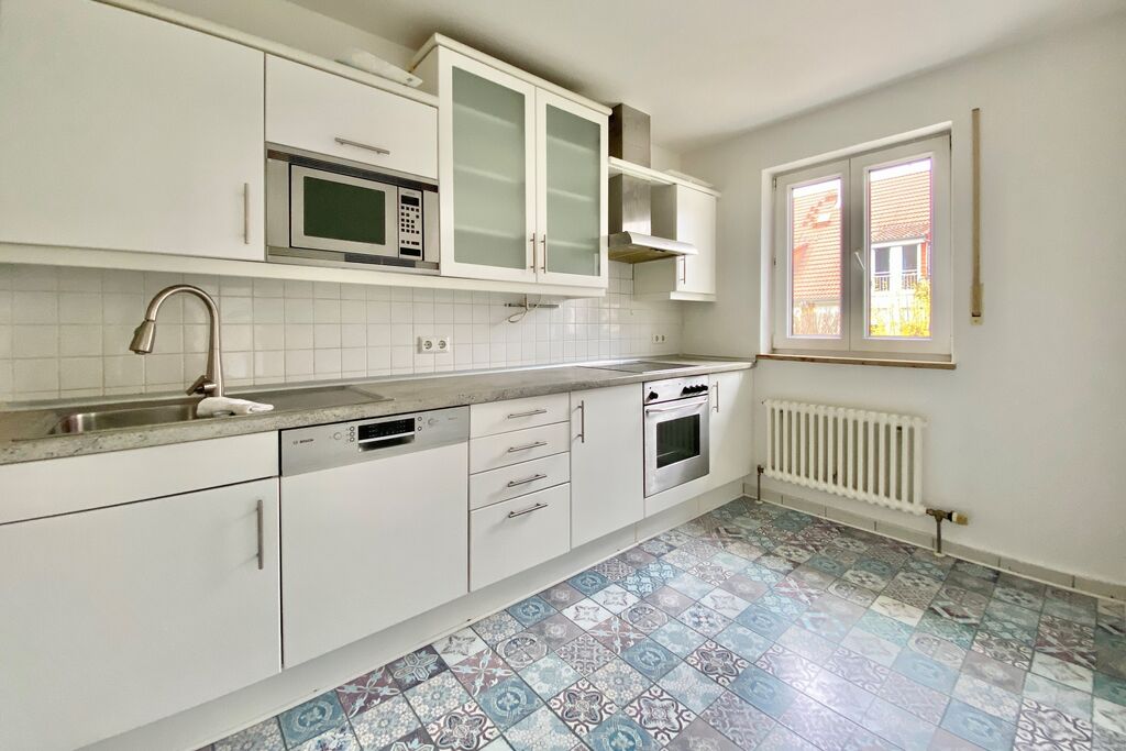 Der geräumige Wohnbereich im Erdgeschoss ist durch zwei Stufen vom Essbereich getrennt, von welchem man in die Küche gelangt aber auch zum Garten, der zum Entspannen, Genießen und Grillen einlädt. In der separaten Küche wird Komfort großgeschrieben: Mit der planvollen Anordnung und kurzen Wegen wird das Kochen hier zum Vergnügen.