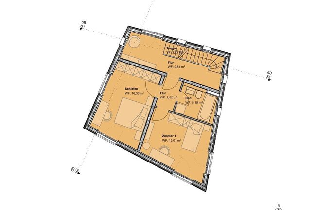 Die großzügige 3-Zimmer-Wohnung mit ca. 95m² Wohnfläche verteilt sich über die erste Etage und das Dachgeschoss des Stadthauses mit großer südlich ausgerichteter Terrasse (ca. 17,5m²), die einen herrlichen Blick auf die Ostsee und die Naturlandschaft der Südküste von Göhren ermöglicht. Während in dem Obergeschoss zwei Zimmer liegen, die zum Arbeiten und Schlafen genutzt werden können, ebenso wie das Badezimmer, befinden sich der offene Wohn- und Essbereich und ein Gäste-WC im Obergeschoss. Bodentiefe Fensterfronten ermöglichen einen tollen Blick und leiten zur Terrasse. Die Wohnung befindet sich in der ersten Etage und im DG des Townhouses auf Baufeld 6B. Optimale Lichtverhältnisse, ökologisches und energieeffizientes Wohnen in durchdachten Architektenhäusern bieten die beste Voraussetzung für einen Wohnsitz, der Arbeiten und Leben in der Natur am Meer möglich macht. Die Townhäuser sind ein Bestandteil des Naturquartier Rügen in Göhren, südöstlich gelegen auf der Halbinsel Mönchgut. In enger Zusammenarbeit mit ausgewählten Architekten legen die Projektentwickler den Fokus auf ökologische und nachhaltige Bauweise, auf reduzierte und klare Architektur- und Formensprache und auf gemeinschaftliches Wohnen auf einem der letzten idyllisch-naturbelassenen Grundstücke.