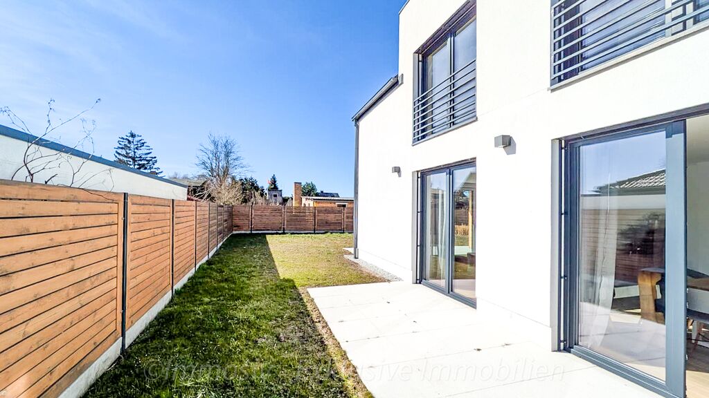 Die zweigeschossigen Häuser sind auf Komfort und Funktionalität ausgerichtet. Im Erdgeschoss befinden sich eine geräumige Garage, ein Hauswirtschaftsraum, ein hochwertiges Gästebad sowie ein offener Wohnbereich mit sonnendurchflutetem Wohnzimmer, angrenzender Einbauküche mit einer Kochinsel und Zugang zur den Terrasse und dem eingezäunten Garten. Über eine moderne Designertreppe gelangt man ins Obergeschoss, das ein großzügiges Badezimmer mit freistehender Badewanne und Doppelwaschtisch sowie drei weitere Zimmer bietet, die vielfältige Nutzungsmöglichkeiten ermöglichen.