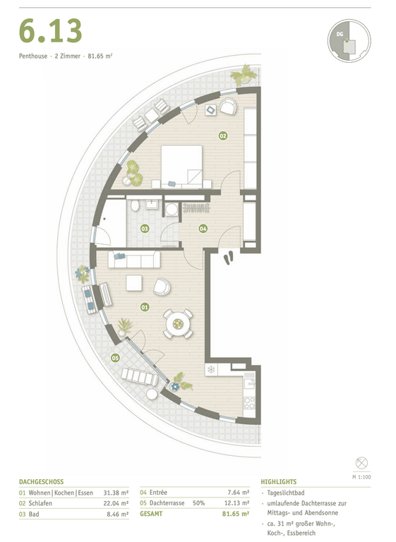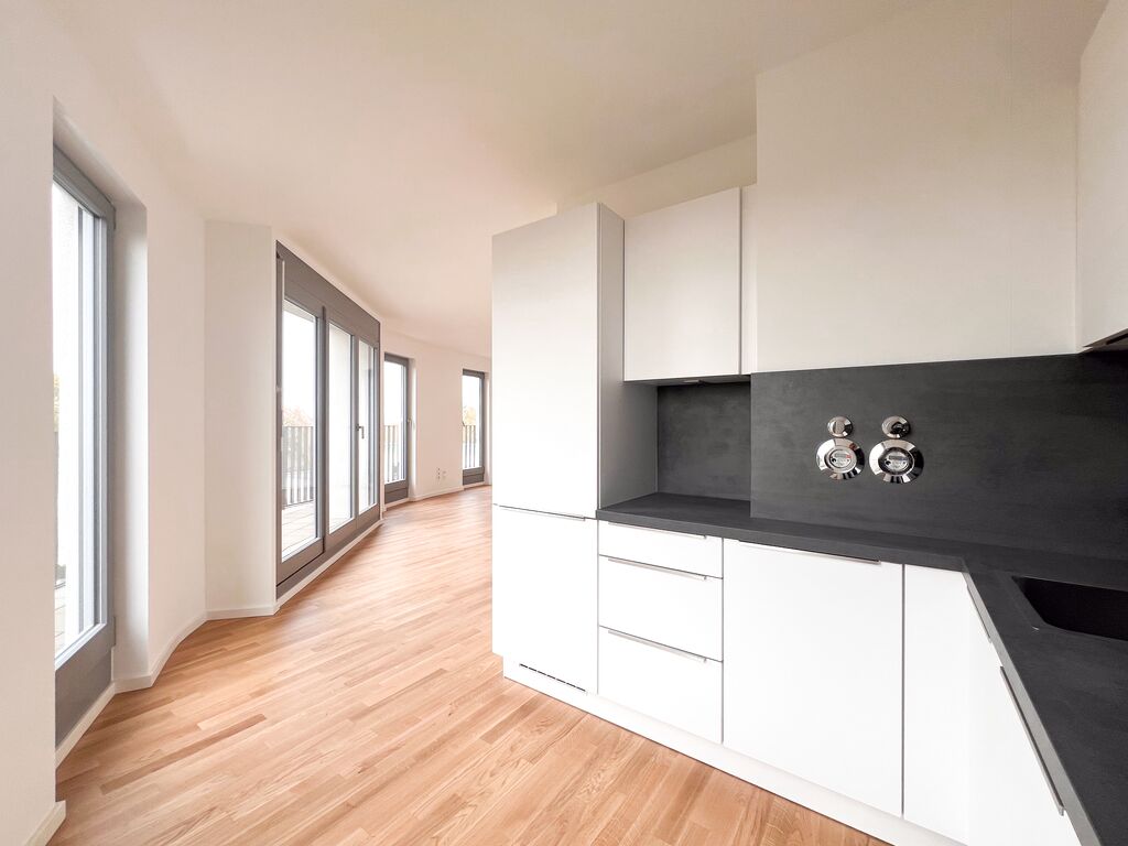 Der denkmalgeschützte Sockel des Gasometers wurde sorgfältig restauriert und erweitert, um Platz für 14 exklusive Suiten und Penthouses zu schaffen. Diese Wohnräume bieten mit ihren 2 bis 3 Zimmern und einer Fläche von 46 m² bis 82 m² reichlich Platz zur Entfaltung. Genießen Sie den Luxus von Terrassen, französischen Balkonen und Dachterrassen, die jeden Wohntraum wahr werden lassen.