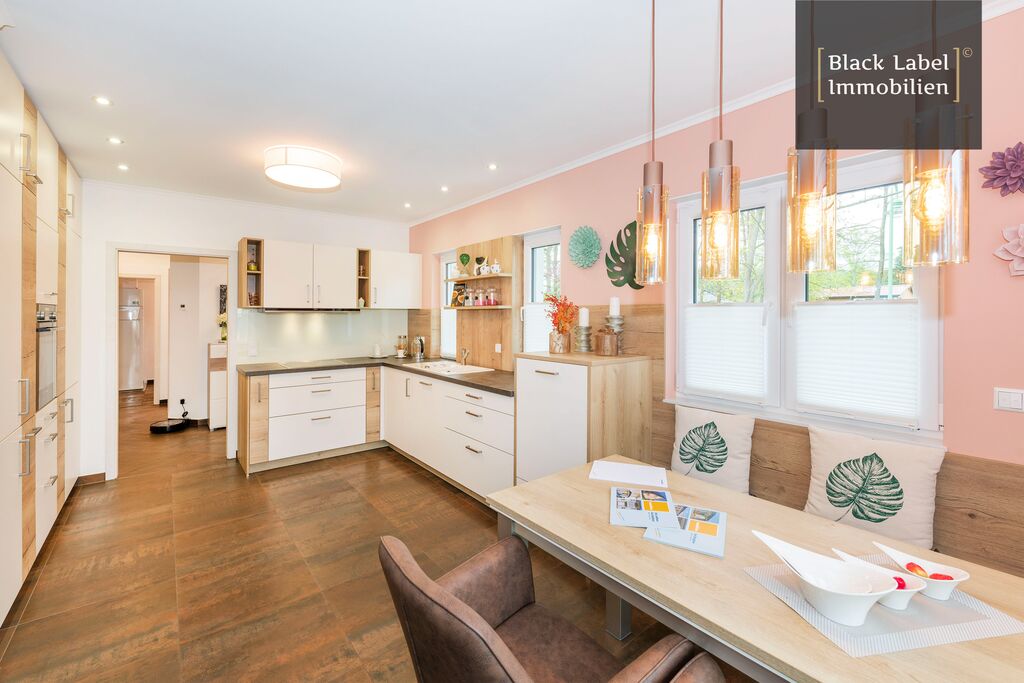 Gelungene Kombination aus Stadthaus und Bungalow in Petershagen/Eggersdorf! Verkauft werden ein wunderschönes Stadthaus auf zwei Etagen und der daran angrenzende Bungalow auf einem großzügigen Grundstück von ca. 1142m² in Petershagen/Eggersdorf, Brandenburg. Das Stadthaus mit einer Wohnfläche von ca. 130m² bietet im Erdgeschoss ein geräumiges Wohnzimmer mit Zugang zum Garten, eine moderne Einbauküche mit allen elektrischen Geräten und ebenfalls einem Zugang zum Garten, einen Hauswirtschaftsraum und ein Gäste-WC. Im Obergeschoss befinden sich drei Zimmer, die als Schlaf-, Kinder- oder Arbeitszimmer genutzt werden können, sowie ein Tageslicht-Badezimmer mit Dusche und Wanne. Die Solaranlage auf dem Dach des Stadthauses zur Warmwasserbereitung ist nicht nur umweltfreundlich, sondern hilft auch dabei, die Energiekosten zu senken. Der Bungalow mit einer Wohnfläche von ca. 78m² bietet ein Wohnzimmer und eine Küche mit Zugang zum Garten, ein Schlafzimmer, ein Schlafzimmer, ein Tageslicht-Badezimmer mit Dusche und einen Hauswirtschaftsraum. Beide Häuser verfügen über Fußbodenheizung und elektrische Rollläden. Die modernen Einbauküchen mit allen elektrischen Geräten sowie Möbel aus Eingangs-, Wohn- und Essbereich werden mitverkauft, sodass Sie sich direkt zu Hause fühlen können. Das großzügige Grundstück und die beiden Häuser bieten ausreichend Platz für große Familien oder sogar für zwei Generationen. Die Lage in Petershagen/Eggersdorf ist ruhig und dennoch zentral, mit guter Anbindung an den öffentlichen Nahverkehr und die Autobahn. Buchen Sie jetzt Ihre Besichtigung und lassen Sie sich von dieser einzigartigen Immobilie beeindrucken!