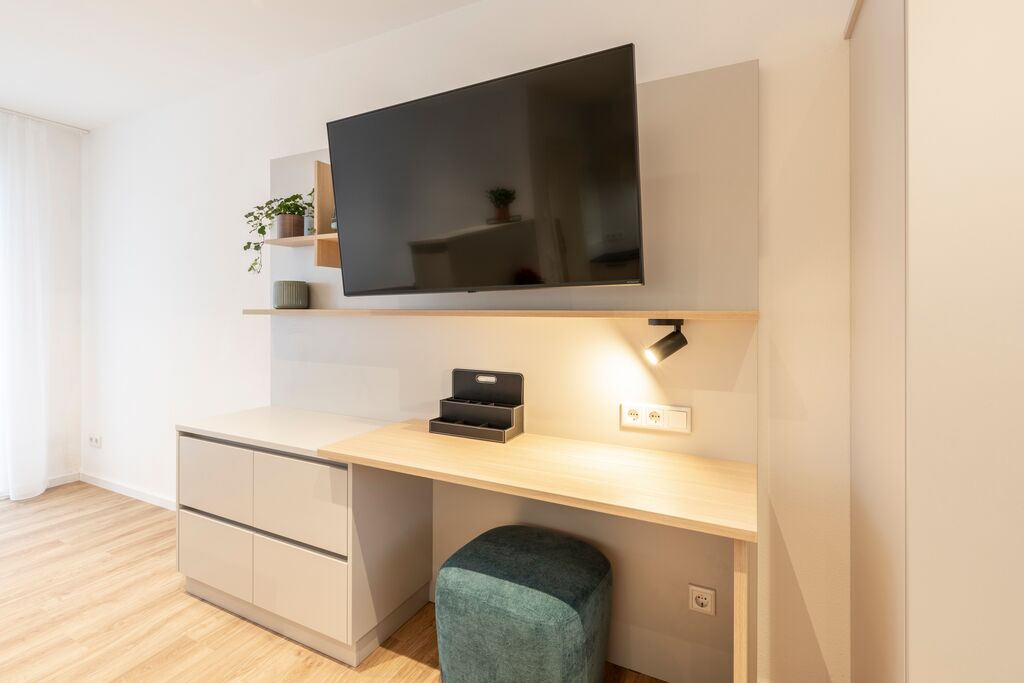 Hier bieten wir Ihnen einen exklusiven, vollmöblierten Wohntraum in Prien am Chiemsee an. In perfekter Südausrichtung, z.T. mit Bergblick sind hier wunderbare, perfekt geschnittene 1-Zimmer Appartements entstanden, die im höchsten Baustandard KfW40 QNG errichtet wurden. Die perfekten Grundrisse, bieten richtig viel Platz und Komfort - inkl. toller Einbauküche von 3er Küchen aus München, einem Sofa, Esstisch und einem luxuriösen Boxspringbett. Die Möbel stammen allesamt vom lokalen Schreiner Schuster aus Bernau. Viel Komfort gibts im hellen Badezimmer mit Fenster, das mit einer bodentiefen Luxus-Dusche Wohlfühlmomente schafft. Die hochwertige Bauweise sorgt für niedrigsten Energieverbrauch, die Heizung erfolgt über eine Luftwärmepumpe, die mit Photovoltaik versorgt wird - besser geht´s nicht!