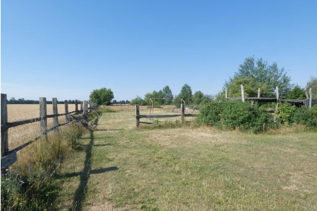 • Pferdekoppel, ca. 4.000 m² Gebäude 1: rechter Seitenflügel, bestehend aus Erdgeschoss und Dachgeschoss ausgebaut zu Gästezimmern mit je einem Badezimmer Gebäude 2: linker Seitenflügel, bestehend aus Erdgeschoss und Dachgeschoss ausgebaut zu Gästezimmern mit je einem Badezimmer sowie Küche und Frühstücksraum Gebäude 3: hinteres Quergebäude, als Spiel- und Freizeitraum ausgebaut, hier finden sich auch 10 Pferdeboxen. Das Baujahr ist nicht genau bekannt, die Gebäudeteile wurden 2000 komplett saniert und umgebaut. Zum Ortstermin des Sachverständigen waren keine Baumängel oder Schäden ersichtlich. Die Erschließung erfolgt über die Dorfstraße, die üblichen Ver- und Entsorgungsanschlüsse sind vorhanden. Das Grundstück befindet sich in einem Wohngebiet und ist von der Straße aus eben, so wie nahezu das gesamte Grundstück.
