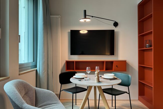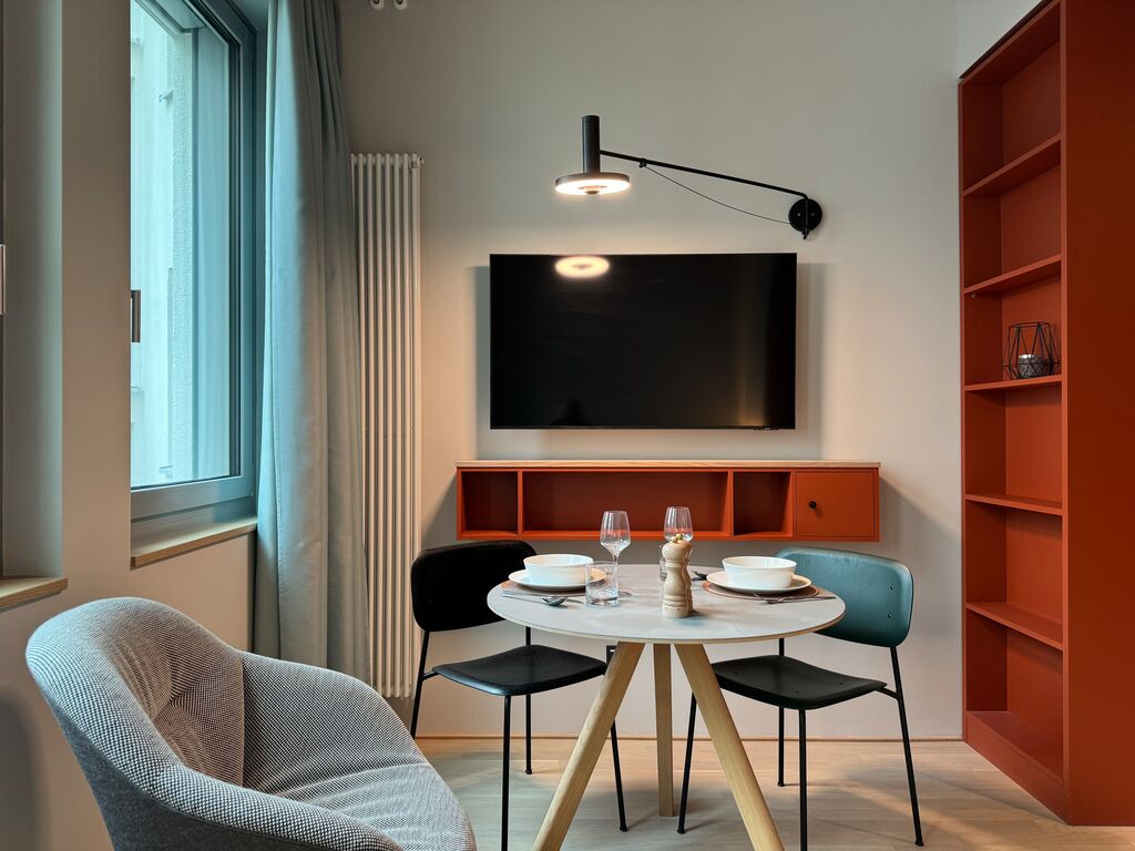 MY APART. SEIN UND DESIGN Von der Tiefgarage bis zur Dachterrasse, von der Lounge bis zum Badezimmer trägt MY APART die Handschrift professioneller Projektentwickler und kreativer Designer. Das Resultat sind 17 bis 40 Quadratmeter große Apartments mit einer perfekten Verbindung aus Komfort und Gestaltung. Das aus insgesamt drei einzelnen Baukörpern bestehende Gebäudeensemble „Oktavian“ wurde im Jahr 1992 als rein gewerbliches Büro- und Verwaltungsgebäude konzipiert und in einer selbst für die heutige Zeit sehr hochwertigen Bauqualität erstellt. Die jeweils achteckigen Gebäudekörper (daher auch der Name „Oktavian“) sind im Untergeschoss durch ein einheitliches, rechteckiges Tiefgaragenbauwerk miteinander verbunden, dass über eine an der seitlich verlaufenden Feringastraße gelegenen Ein- und Ausfahrt insgesamt erschlossen ist. Inflationsgeschütztes Investment direkt am Englischen Garten in München-Unterföhring. Die Teileigentumseinheit verfügt über handgefertigte Einbaumöbel und wohnliche Accessoires. Das Beleuchtungskonzept umfasst Einbaustrahler und umlaufende LED-Spiegelbeleuchtung in den Bädern. Die Küchen sind ausgestattet mit Spülmaschine, Cerankochfeld mit Umluftofen, Kühlschrank mit Gefrierfach sowie Mikrowelle mit Grill. Große Flatscreens inklusive Mirroring-Funktion sind vorhanden. TV und Tablets dienen als Kommunikationsmittel zwischen Haus und Bewohnern. Zudem gibt es freies WLAN im ganzen Haus. GRÜN TUT GUT. DER ENGLISCHE GARTEN Eine der schönsten Parkanlagen der Welt beginnt direkt vor der Tür – wer kann das schon sagen? Dabei zeichnet sich gerade der nördliche Englische Garten durch eine unberührte Natur und besondere Weitläufigkeit aus und lädt zum Joggen, Radeln oder einfach nur zu einem entspannten Spaziergang ein. MY APART im TRI.O + vollausgestattete und bezugsfertige Apartments mit ca. 17-40 m² + Sachwert mit hohem Inflationsschutz und sehr niedrigen Verwaltungskosten + hohe Energieeffizienz im KfW 40 Standard, inkl. Nutzung von Erdwärme und Photovoltaik + voll integrierter Standort mit sehr guter Anbindung und bester Versorgung + indexierter Mietvertrag über 20 Jahre mit sehr erfahrenem Betreiber + Full-Service-Paket + Fertigstellung in 2024 mit 5-jähriger Gewährleistung MY APART ist Teil des Businessensembles TRI.O mit modernen Büro-, Gastronomie- und Konferenzflächen. HIGHLIGHTS TRI.O + Campus mit drei markanten Gebäuden und attraktiven Freiflächen + EG + 4 Regelgeschosse + Staffelgeschoss + Tiefgarage mit rund 355 Stellplätzen + Nutzungen u. a. Boardinghouse, Restaurant, Office und Conferencing + rd. 2.000 qm öffentliche Gemeinschaftsflächen NACHHALTIGKEIT + kernsanierte Energieeffizienzhäuser 40 nach GEG + ca. 30% CO2-Ersparnis durch Erhalt der Bausubstanz + Fernwärme durch Geothermie + 96 % regenerative Heizenergie + Photovoltaik zur Stromerzeugung und Klimatisierung + 16 E-Ladestationen + alter Baumbestand und begrünte Innenhöfe